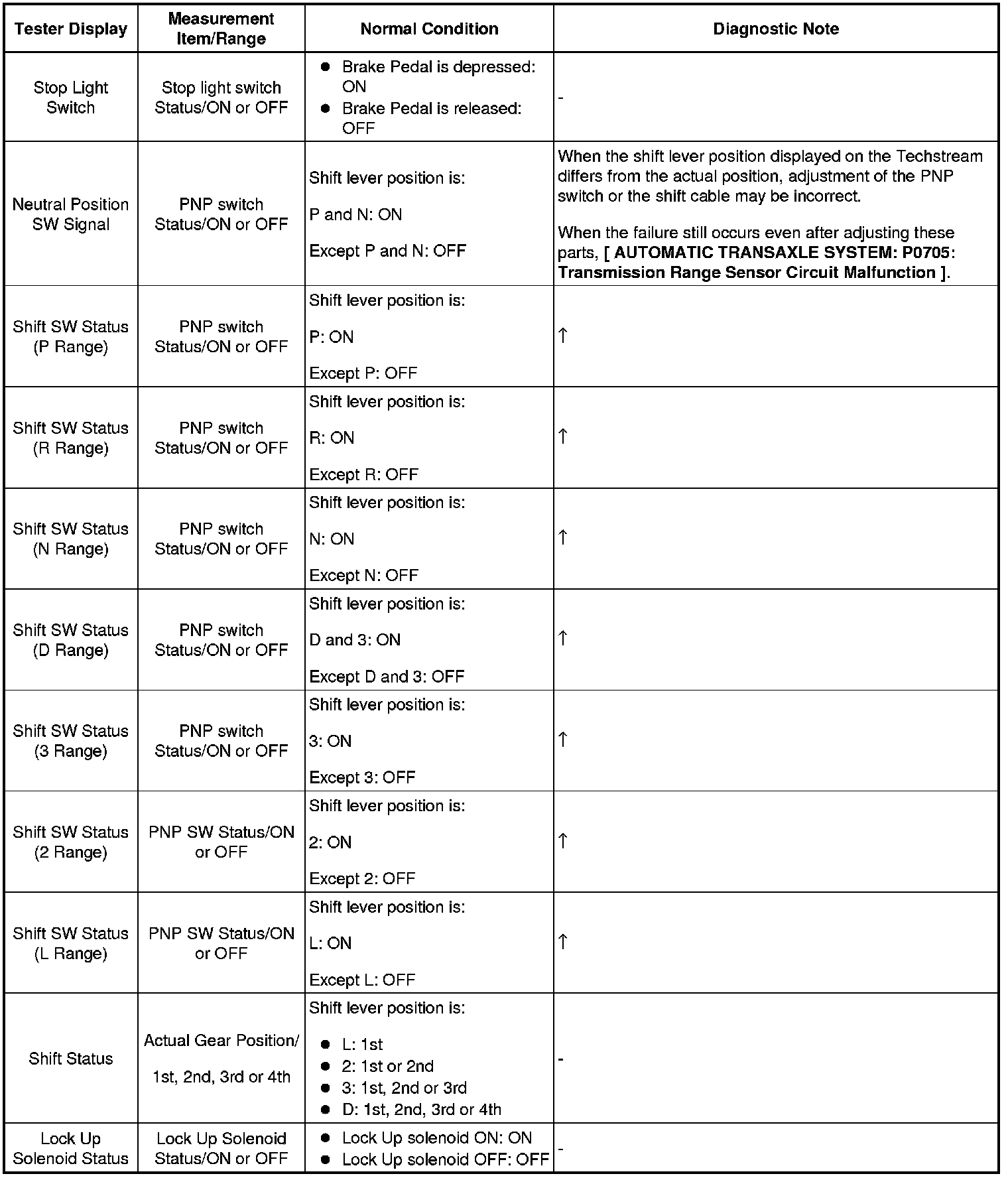 HINT: Using the Techstream to read the Data List allows the values or states of switches, sensors, actuators and other items to be read without removing any parts. This non-intrusive inspection can be very useful because intermittent conditions or signals may be discovered before parts or wiring is disturbed. Reading the Data List information early in troubleshooting is one way to save diagnostic time.