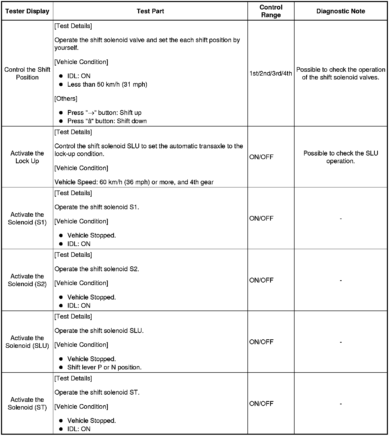*: "Activate the Solenoid (SLT)" in the Active Test is performed to check the line pressure changes by connecting the SST to the automatic transaxle, which is used in the HYDRAULIC TEST Hydraulic Test as well.