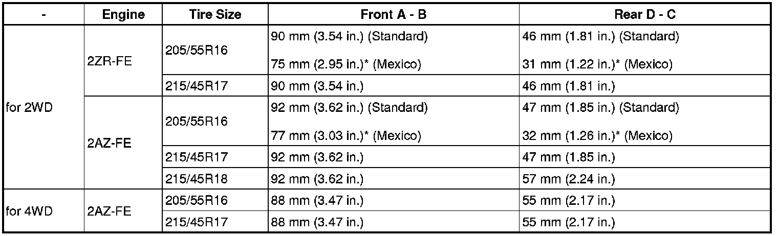 HINT: * for Mexico vehicle height, B and C points are 15 mm (0.591 in.) higher than standard vehicle.