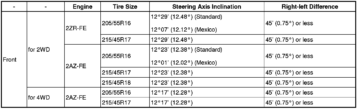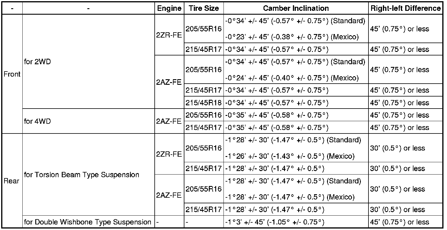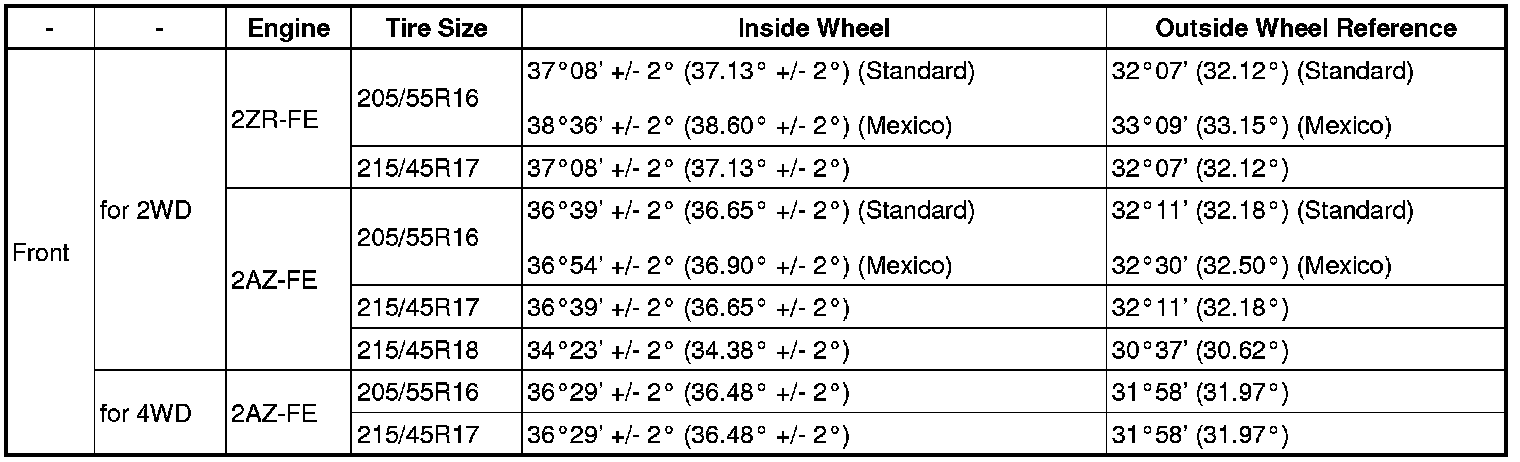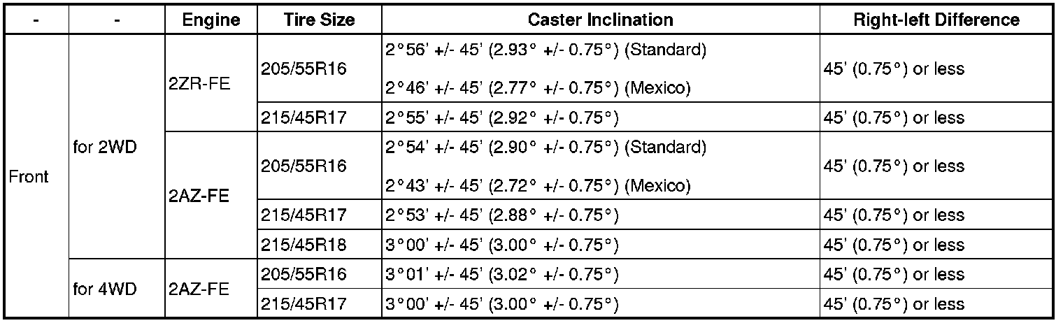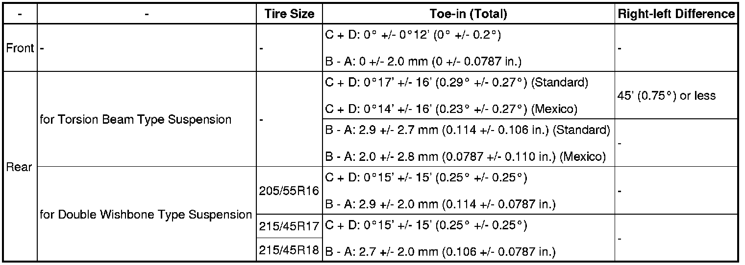 SPECIFICATIONS: ALIGNMENT / HANDLING DIAGNOSIS: SERVICE DATA