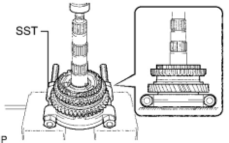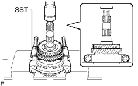(a) Using SST and a press, remove the 3rd driven gear and 2nd gear from the output shaft.