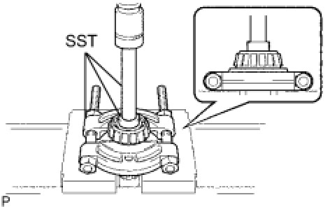 (a) Using SST and a press, remove the output shaft front bearing (inner race) from the output shaft.