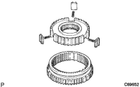 (a) Remove the No. 1 transmission clutch hub, 3 No. 1 synchromesh shifting keys, and 3 No. 1 synchromesh shifting key springs from the reverse gear.