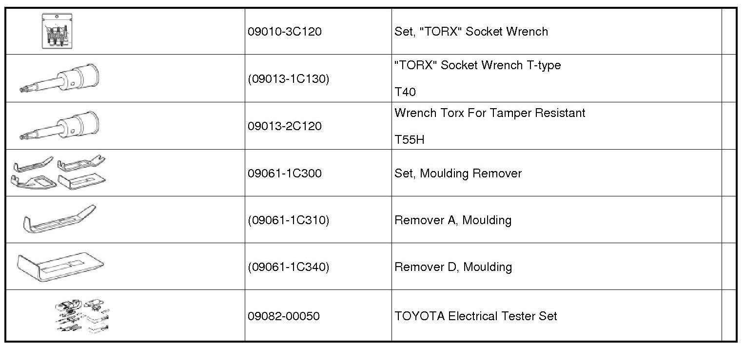 PREPARATION: SEAT: RECOMMENDED TOOLS