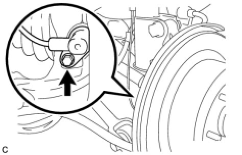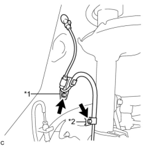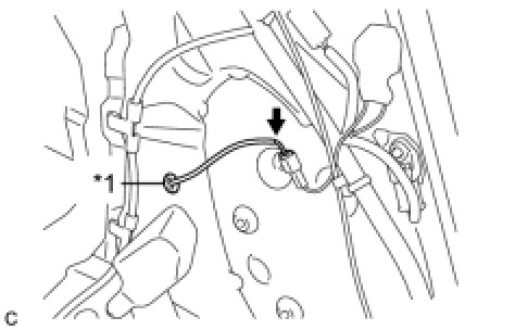 (c) Insert the connector and grommet to the inside of the vehicle through the passage hole in the wheel well.