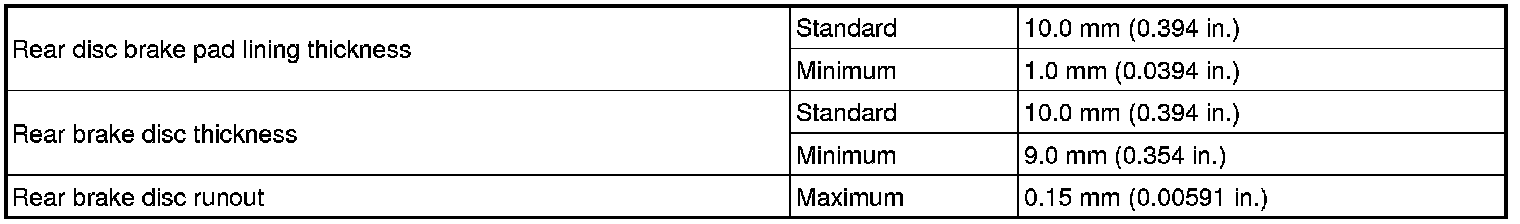 SPECIFICATIONS: BRAKE (REAR): SERVICE DATA