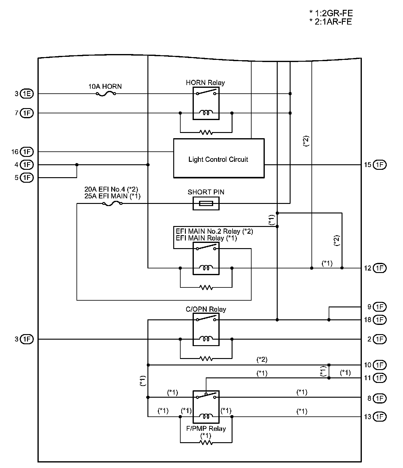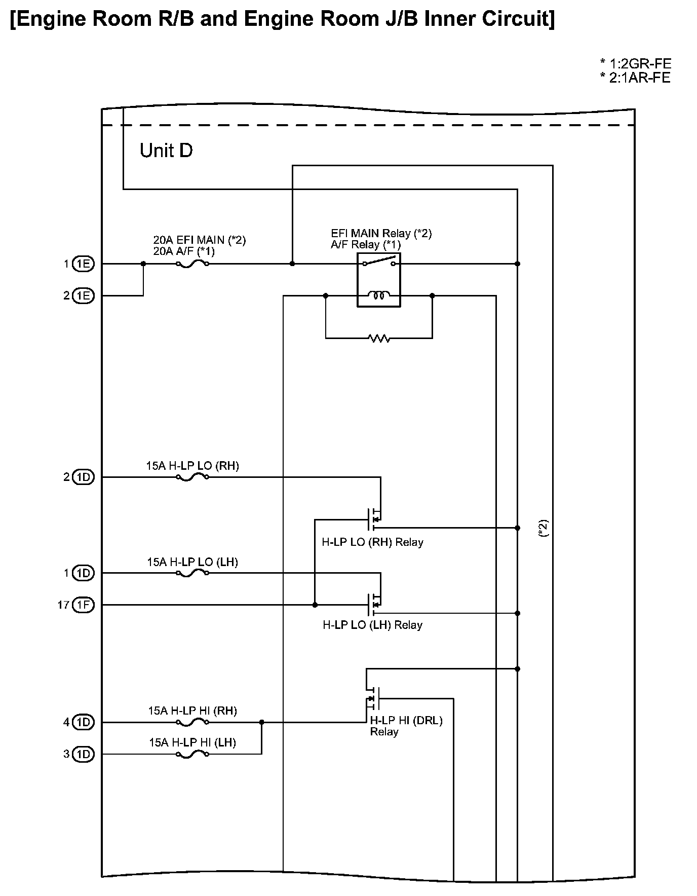 Engine Room R/B and Engine Room J/B Inner Circuit: