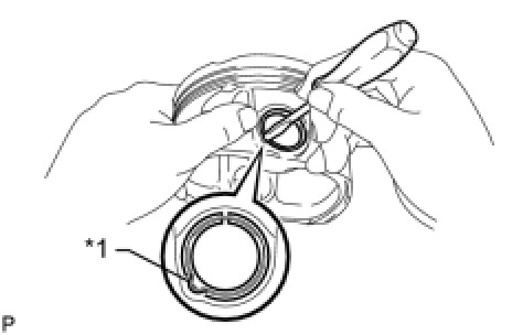 HINT: Be sure that the end gap of the snap ring is not aligned with the service hole cutout portion of the piston.