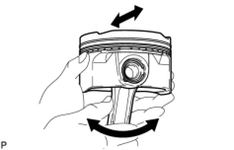 (2) Rotate the piston back and forth on the piston pin. Check the fitting condition.
