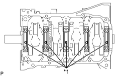 (b) Examine the front marks and numbers, and install the bearing caps onto the cylinder block with the front marks as shown in the illustration.