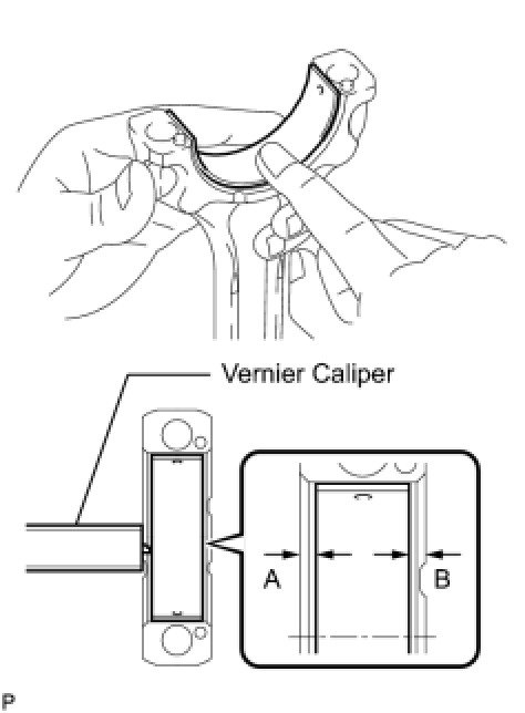 (c) Using a vernier caliper, measure the distance between the edges of the connecting rod and connecting rod bearing, and the edges of the bearing cap and connecting rod bearing.