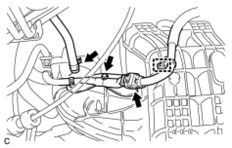 (e) Attach the 2 clamps to the intake manifold and bracket.
