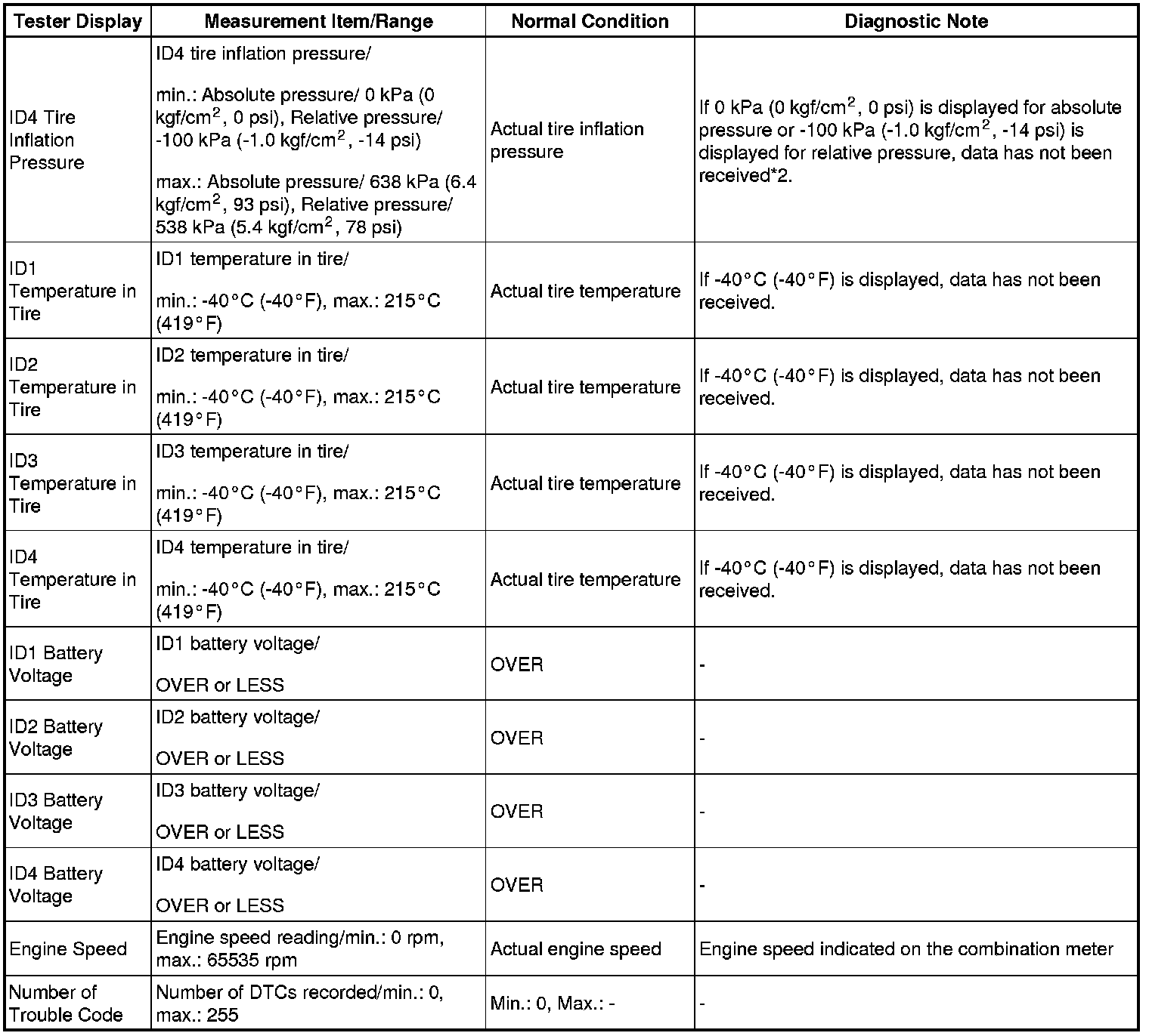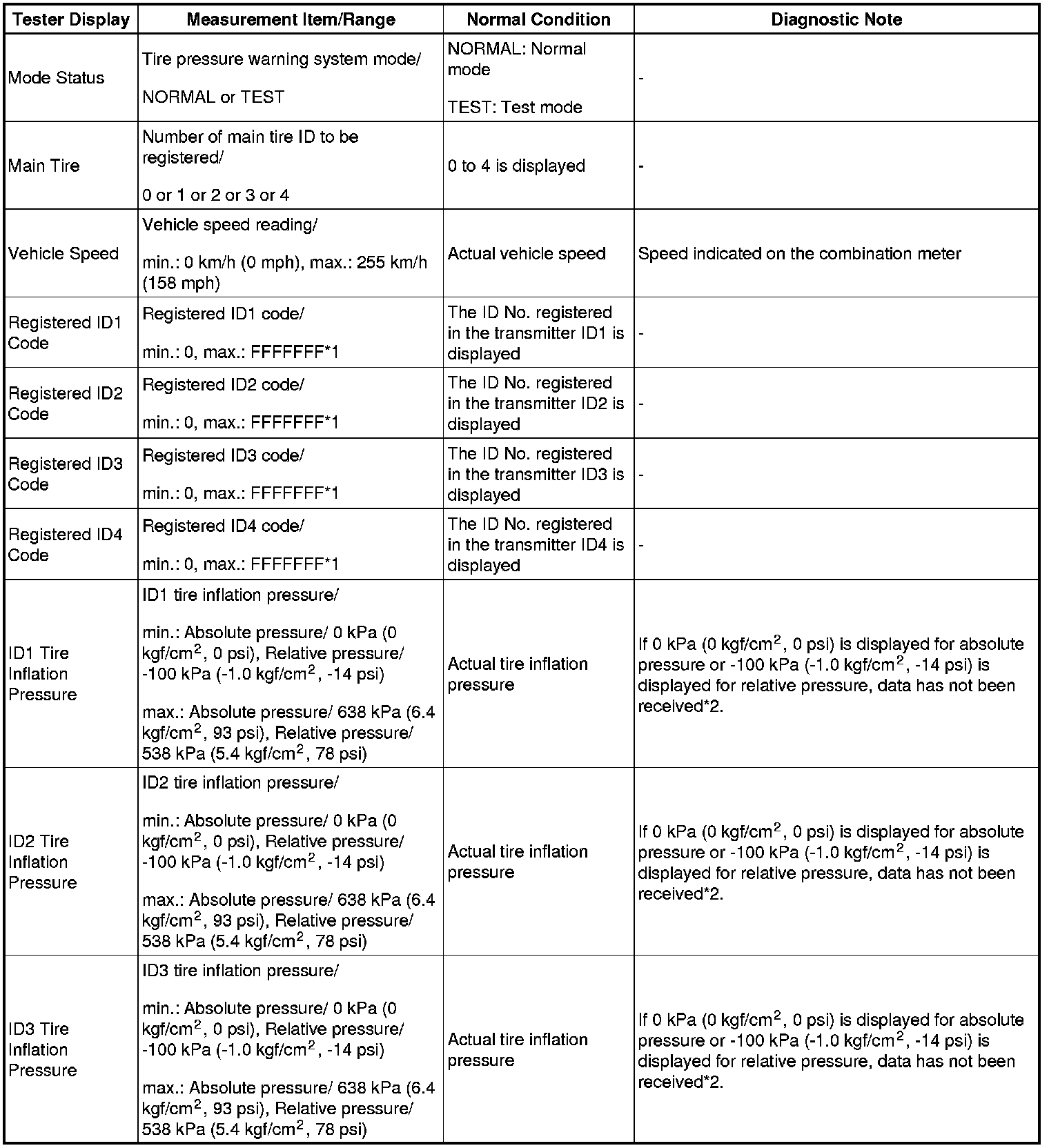 TIRE PRESSURE MONITORING: TIRE PRESSURE WARNING SYSTEM: DATA LIST / ACTIVE TEST