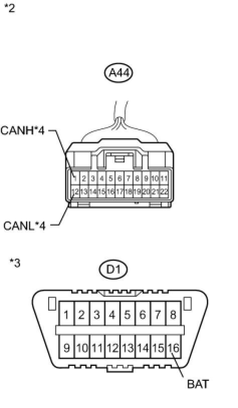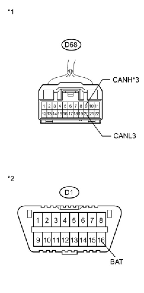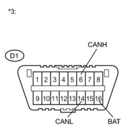 There may be a short circuit between the CAN bus main wire and +B when no resistance exists between terminals 6 (CANH) and 16 (BAT) or 14 (CANL) and 16 (BAT) of the DLC3.