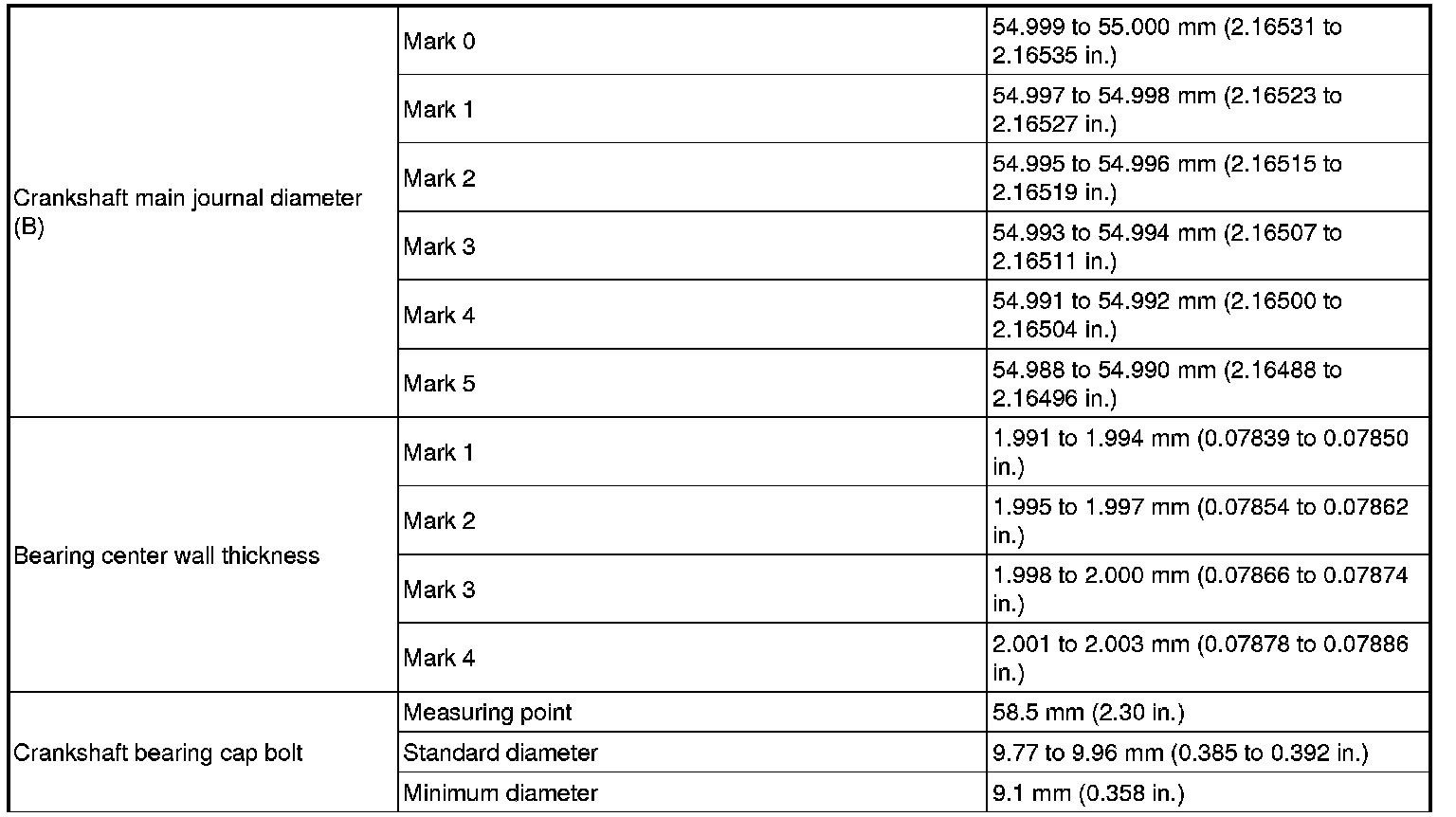 Standard Crankshaft Main Journal Diameter (B):