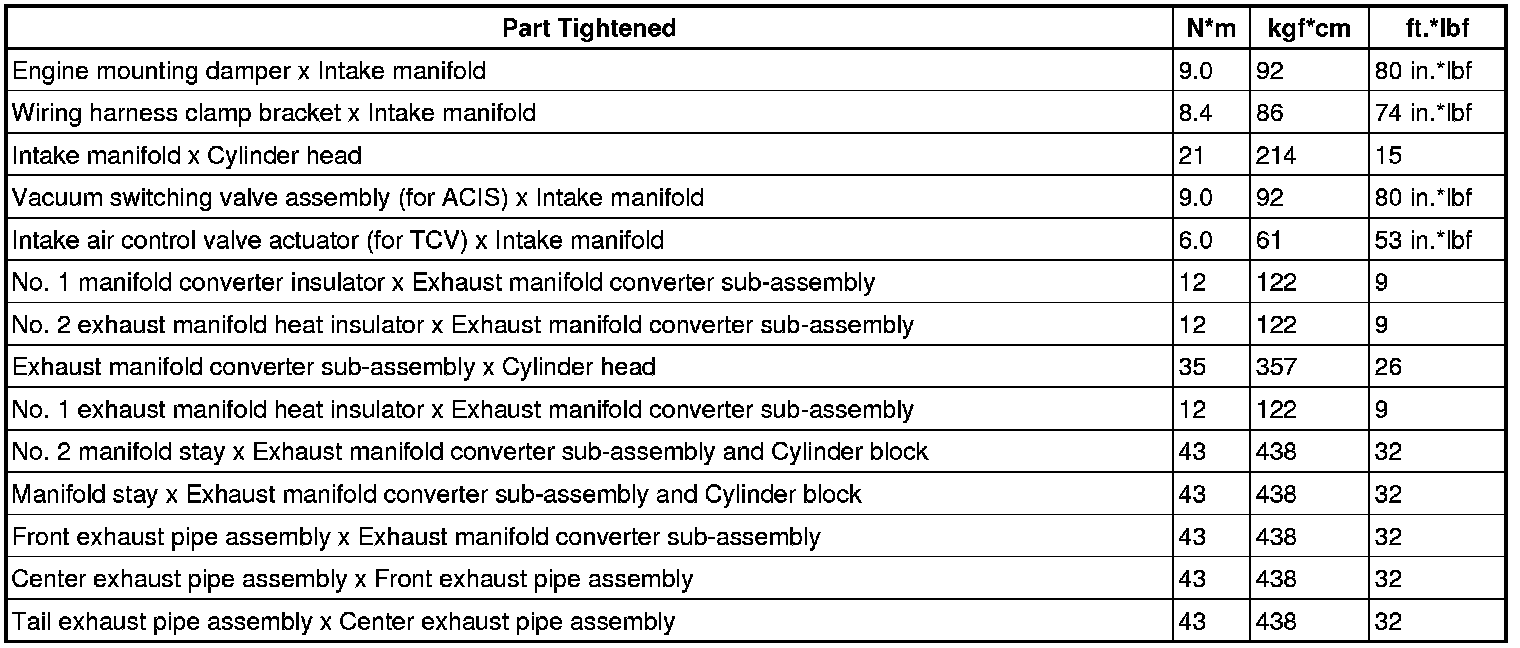 SPECIFICATIONS: 1AR-FE INTAKE / EXHAUST: TORQUE SPECIFICATIONS