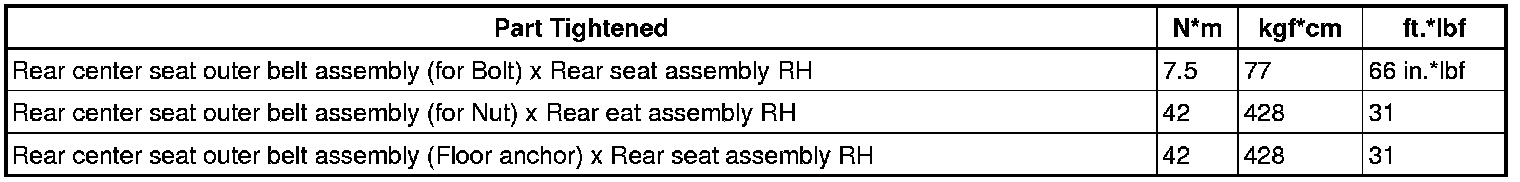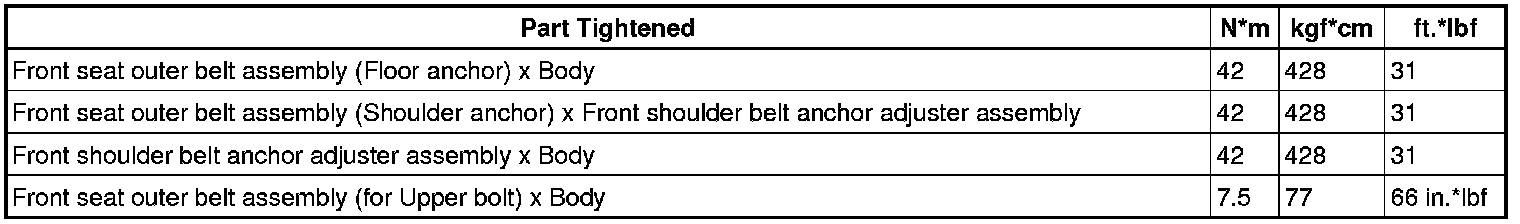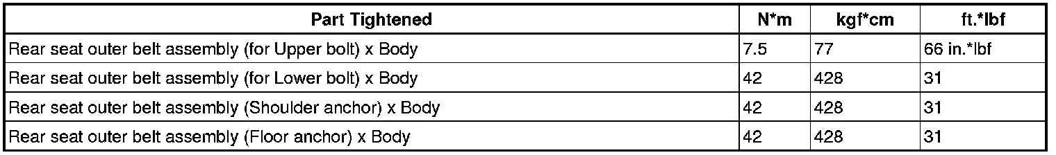 SPECIFICATIONS: SEAT BELT: TORQUE SPECIFICATIONS