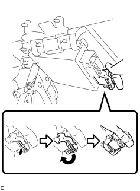 HINT: Pull out the lock of the lock lever, disengage the claw, and raise the lock lever to disconnect the connector as shown in the illustration.