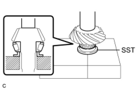 (c) Using SST and a press, press the driven pinion front bearing (inner race) into the driven pinion.