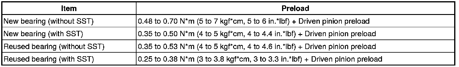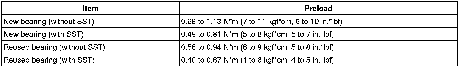 - If the preload is more than the specification, replace the pinion bearing spacer with a new one.