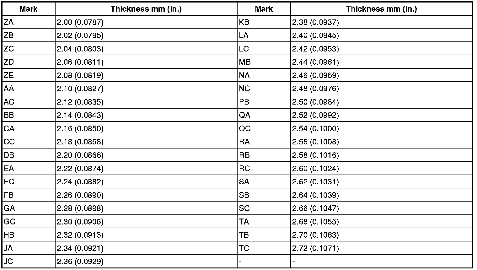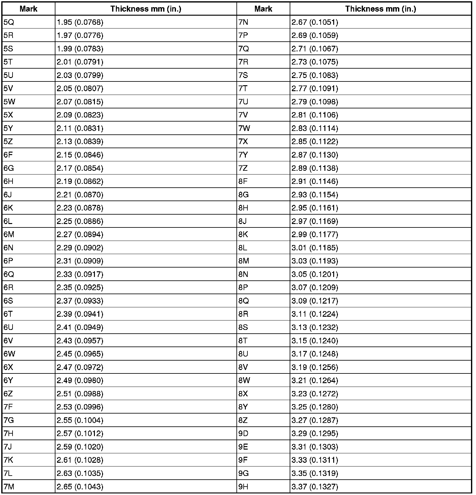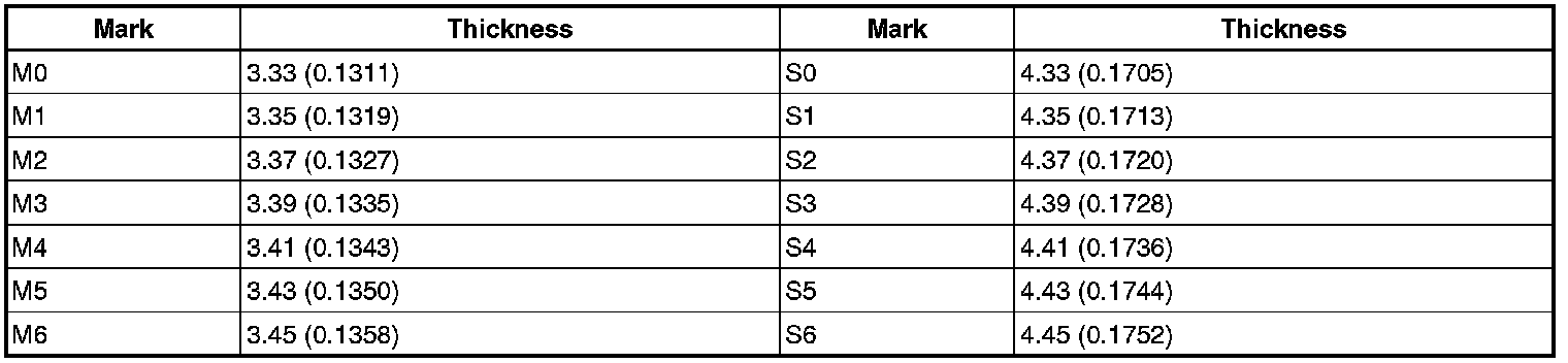 Washer Thickness: mm (in.)