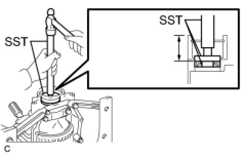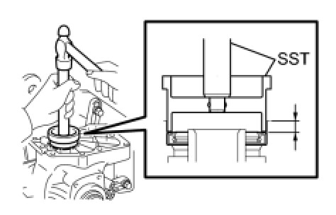 (a) Using SST and a hammer, drive a new transfer case front oil seal into the transfer case until it reaches the position in the illustration.