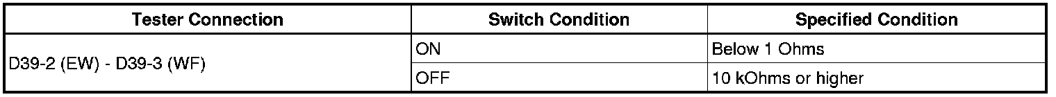 (1) Connect a voltmeter positive (+) lead to terminal D40-3 (+1) and a negative (-) lead to terminal D39-2 (EW).