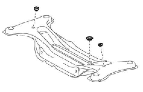 NOTICE: When raising the rear suspension member, be careful not to damage the vehicle body or other components installed on the vehicle.