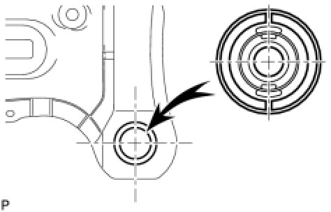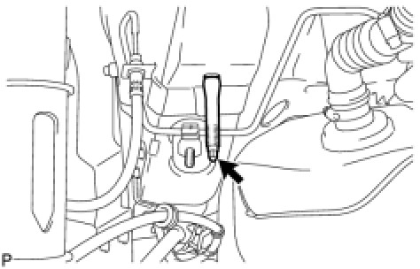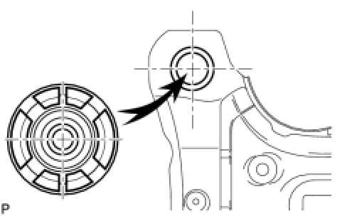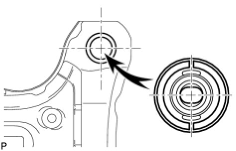 (c) While observing from the side, press in the rear suspension member body mounting front cushion LH until there is no clearance between the rear suspension member body mounting front cushion LH and the rear suspension member sub-assembly as shown in the illustration.