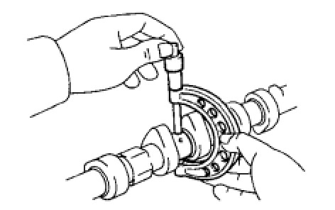 (2) Using a dial indicator, measure the circle runout at the center journal.