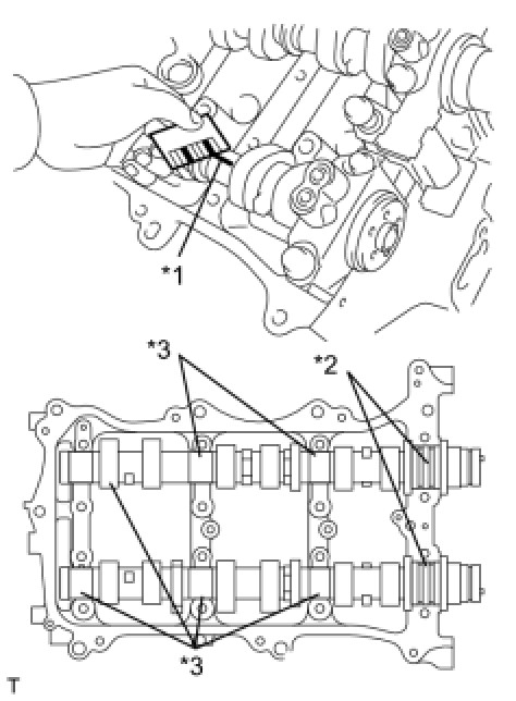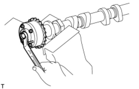 (1) Clamp the camshaft in a vise, and confirm that the camshaft timing gear assembly is locked.
