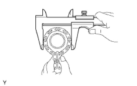 (b) Using a caliper gauge, measure the inside diameter of the idle sprocket assembly.