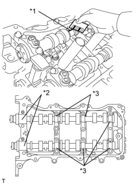 (a) Clean the camshaft bearing caps, camshaft housing and camshaft journals.