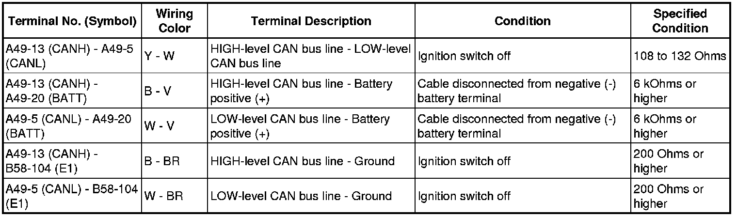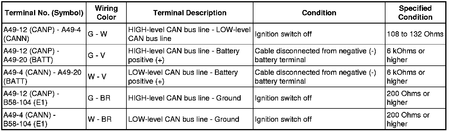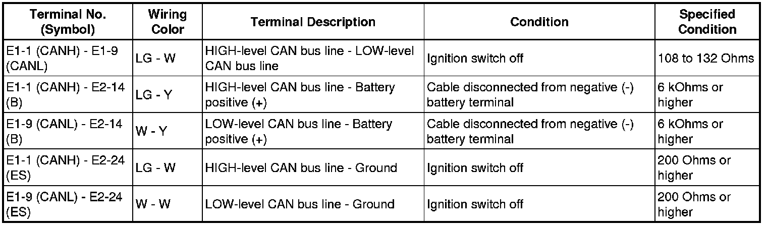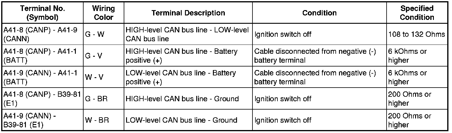 - Turn the ignition switch off before measuring the resistances between CAN bus main wires and between CAN bus branch wires.