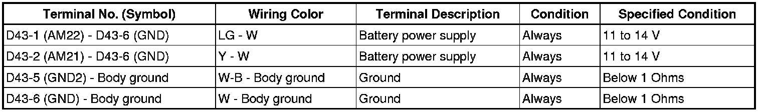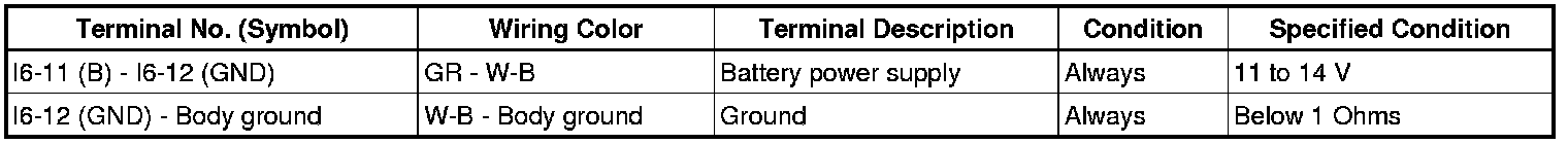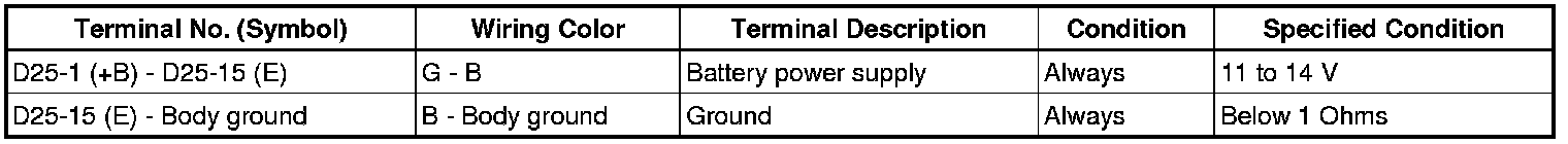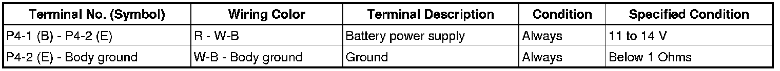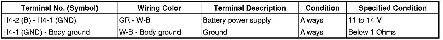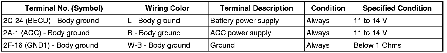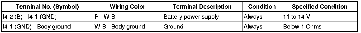 If the result is not as specified, there may be a malfunction in the wire harness.
