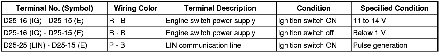 (a) Disconnect the D25 certification ECU (smart key ECU assembly) connector.