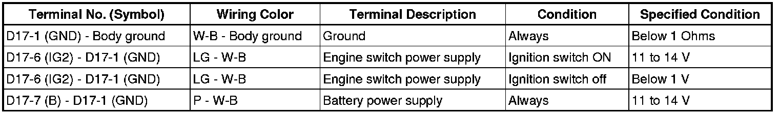 (c) Reconnect the D17 steering lock ECU (steering lock actuator assembly) connector.