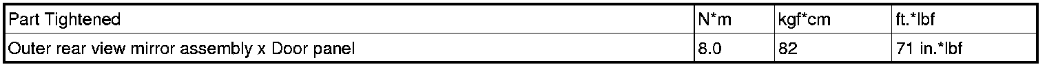 SPECIFICATIONS: MIRROR (EXT): TORQUE SPECIFICATIONS