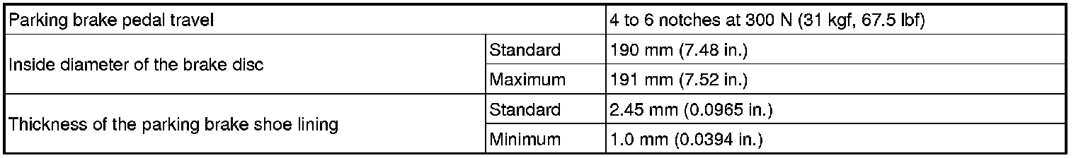 SPECIFICATIONS: PARKING BRAKE: SERVICE DATA