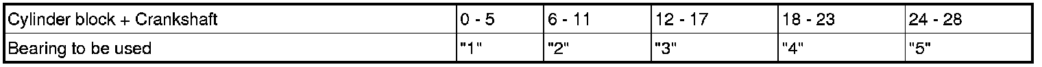 EXAMPLE: Cylinder block "11" + Crankshaft "06" = Total number 17 (Use bearing "3")