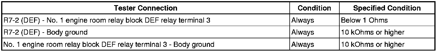 7. CHECK HARNESS AND CONNECTOR (DEF RELAY POWER SOURCE)