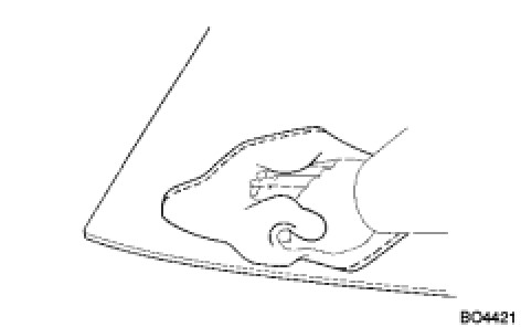 (2) Lightly press the front surface of the windshield glass to ensure that the windshield glass is securely fit to the vehicle body (when a window with missing clips is used).