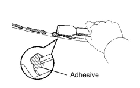 (4) Hold the quarter window assembly in place securely with protective tape or equivalent until the adhesive hardens.