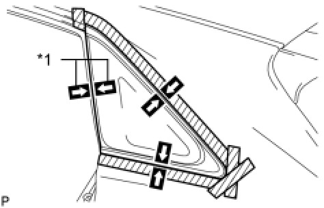 (3) Apply adhesive to the quarter window glass as shown in the illustration.