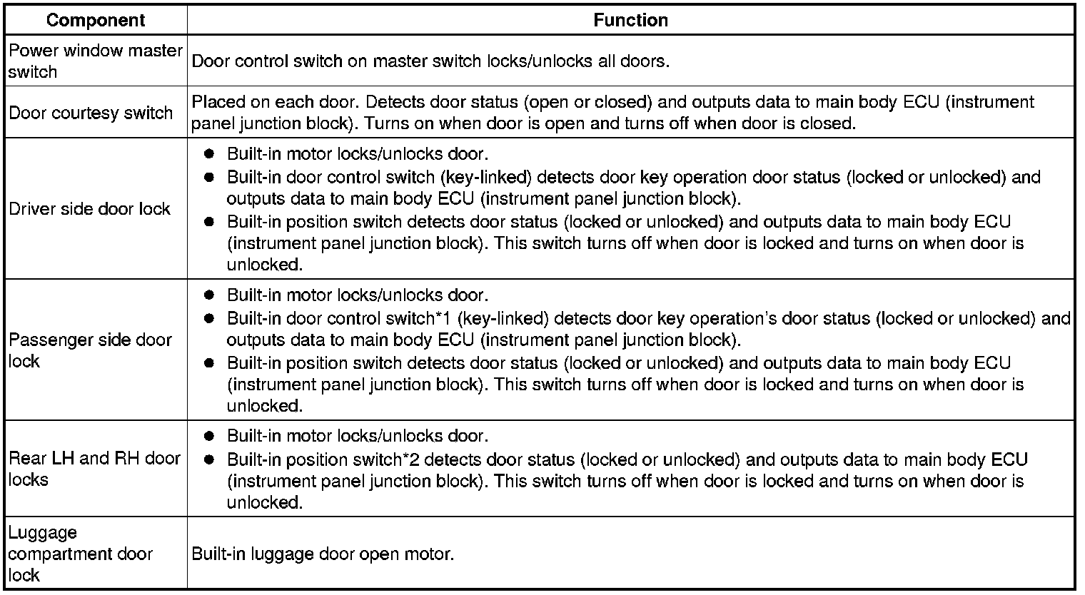 DOOR LOCK: POWER DOOR LOCK CONTROL SYSTEM: SYSTEM DESCRIPTION