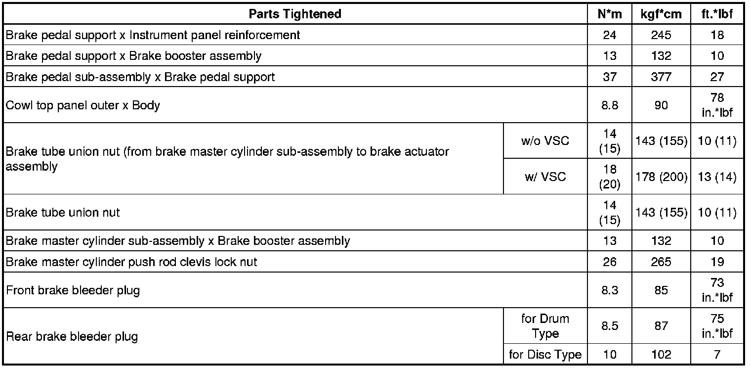 SPECIFICATIONS: BRAKE SYSTEM (OTHER): TORQUE SPECIFICATIONS