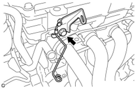 (c) Remove the clip and disconnect the control cable from the control cable bracket.