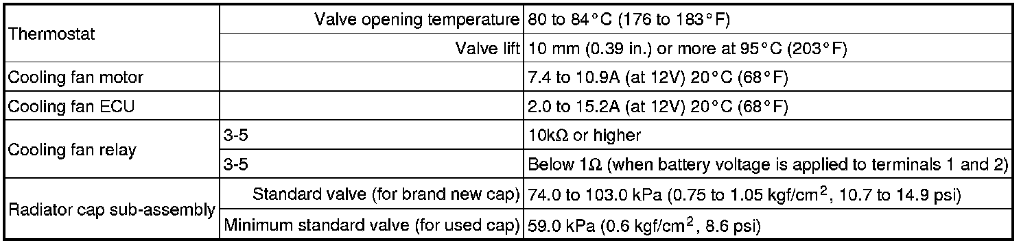 SPECIFICATIONS: 2ZR-FE COOLING: SERVICE DATA