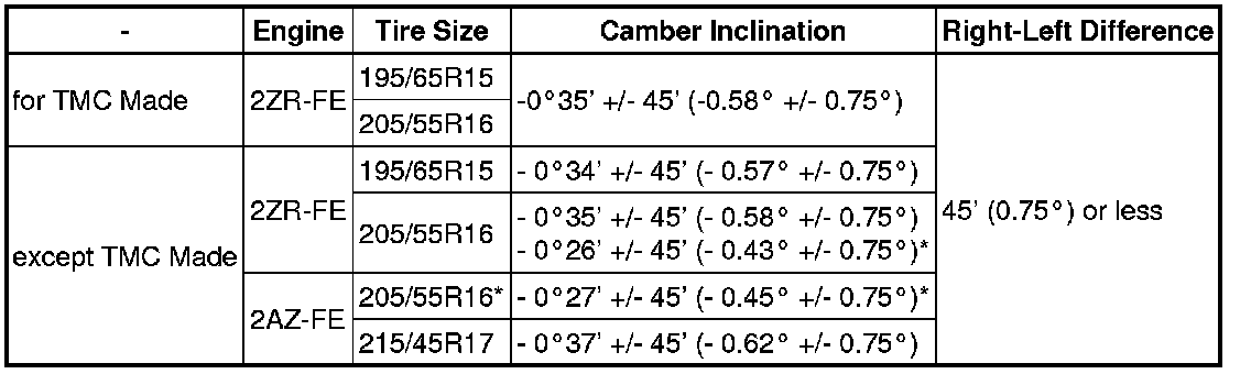 (l) The body and suspension may be damaged if the camber is not correctly adjusted according to the table above.