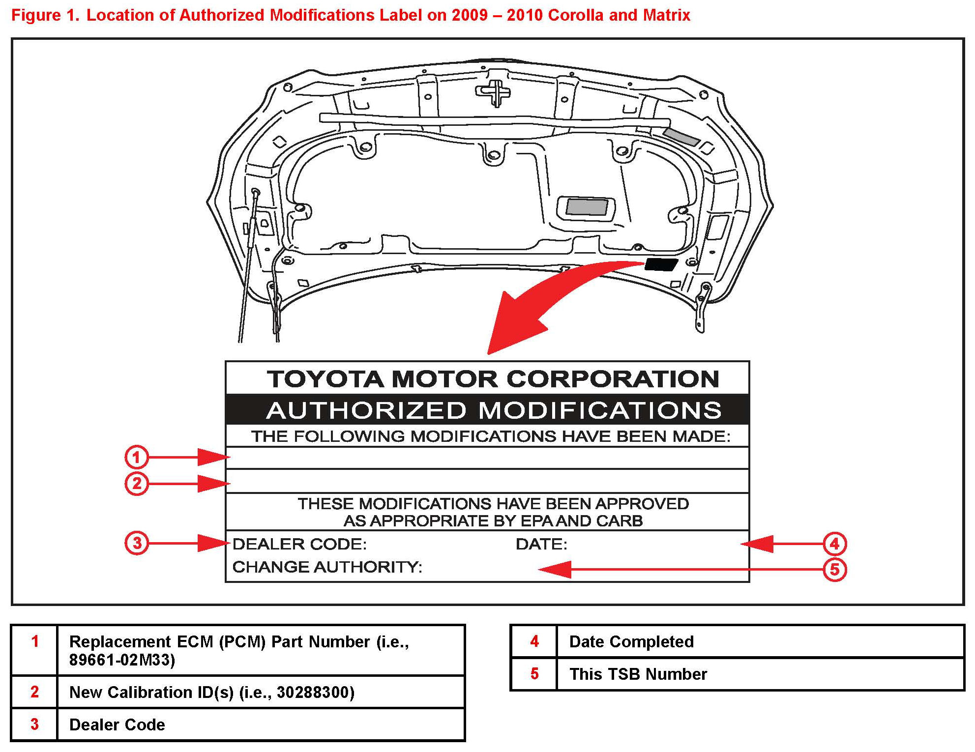 Some 2009 - 2010 model year Corolla and Matrix vehicles with a 2AZ engine may exhibit a MIL "ON" condition with Diagnostic Trouble Code (DTC) P0456 - Evaporative Emission Control System Leak Detected (Very Small Leak). The Engine Control Module/ECM (SAE term: Powertrain Control Module/PCM) logic has been modified to reduce the possibility of this condition occurring. Use the following repair procedure to address this condition.